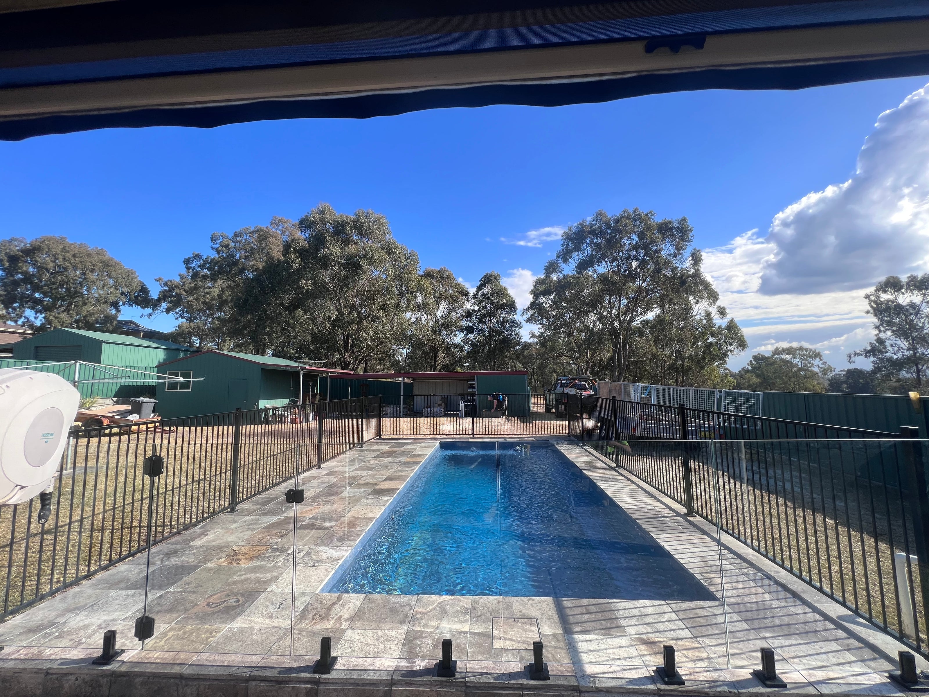 Frameless Glass Pool Fencing, Aluminum Flat Top Fencing & Pool Paving